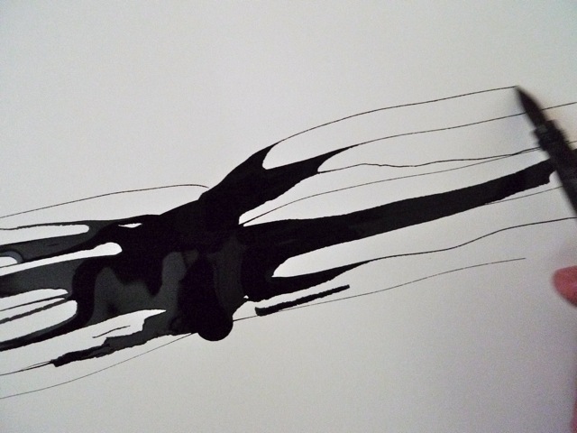 Held almost flat to the paper, the glass nib can now be used almost like a spatula to push the ink around.